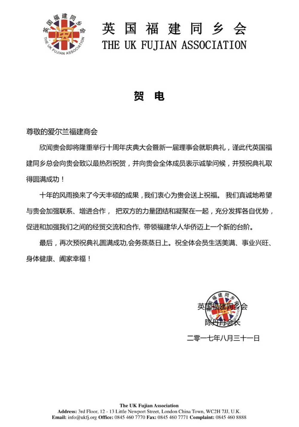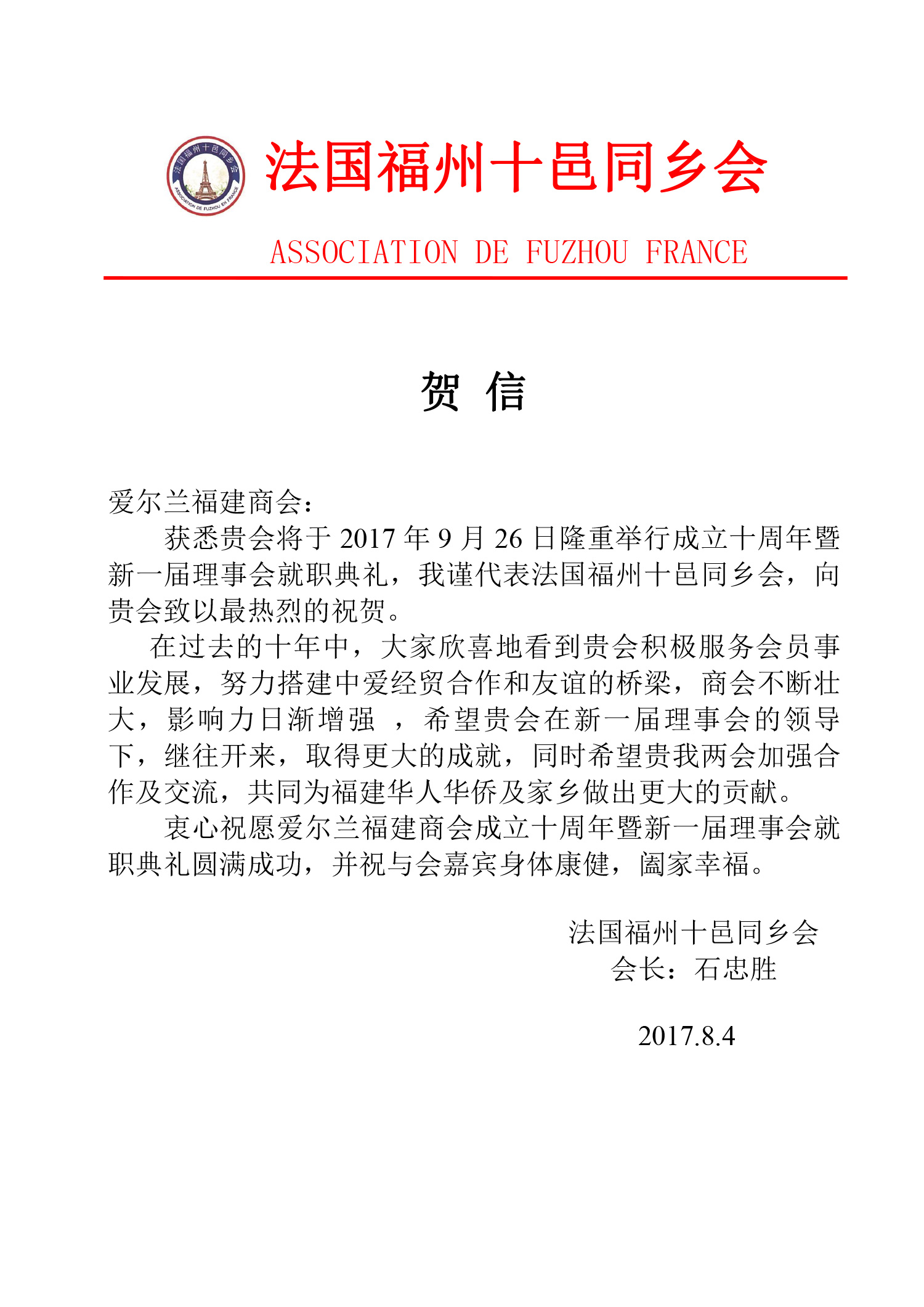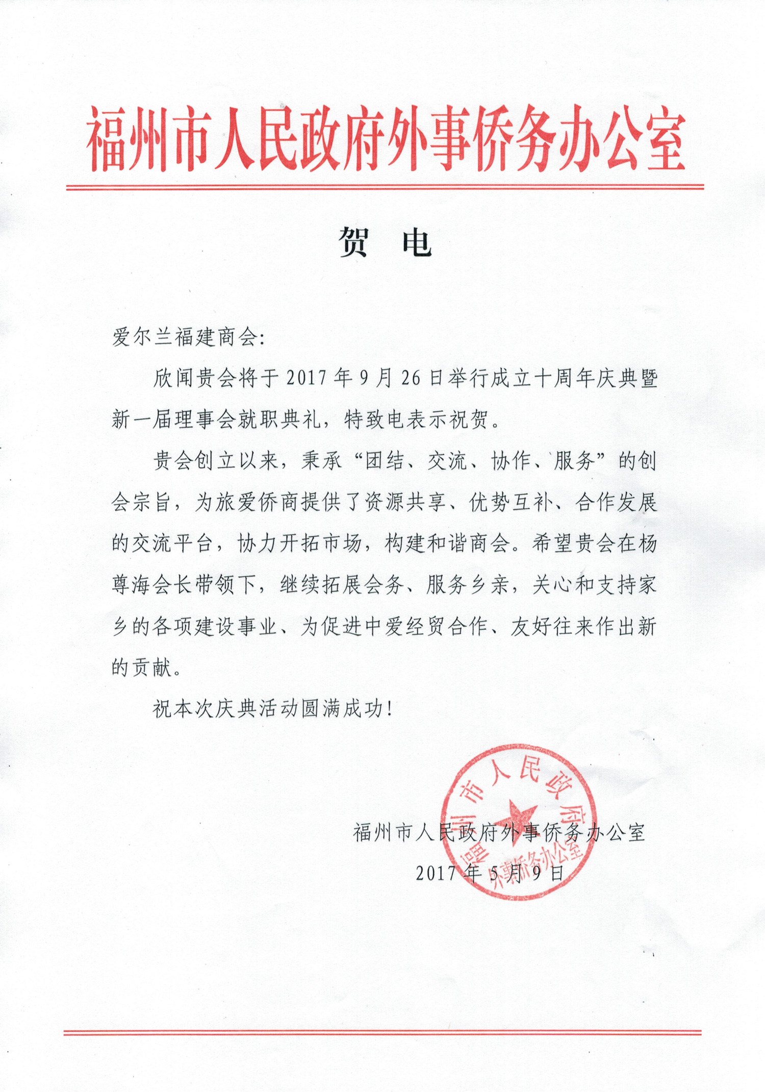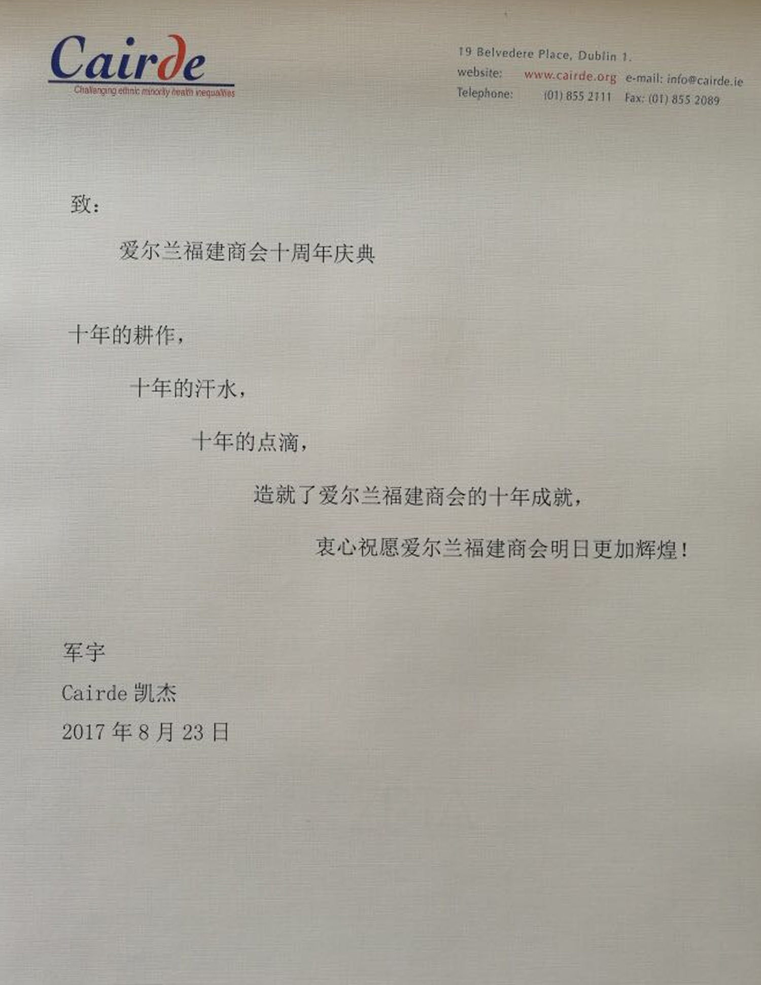 十周年贺信