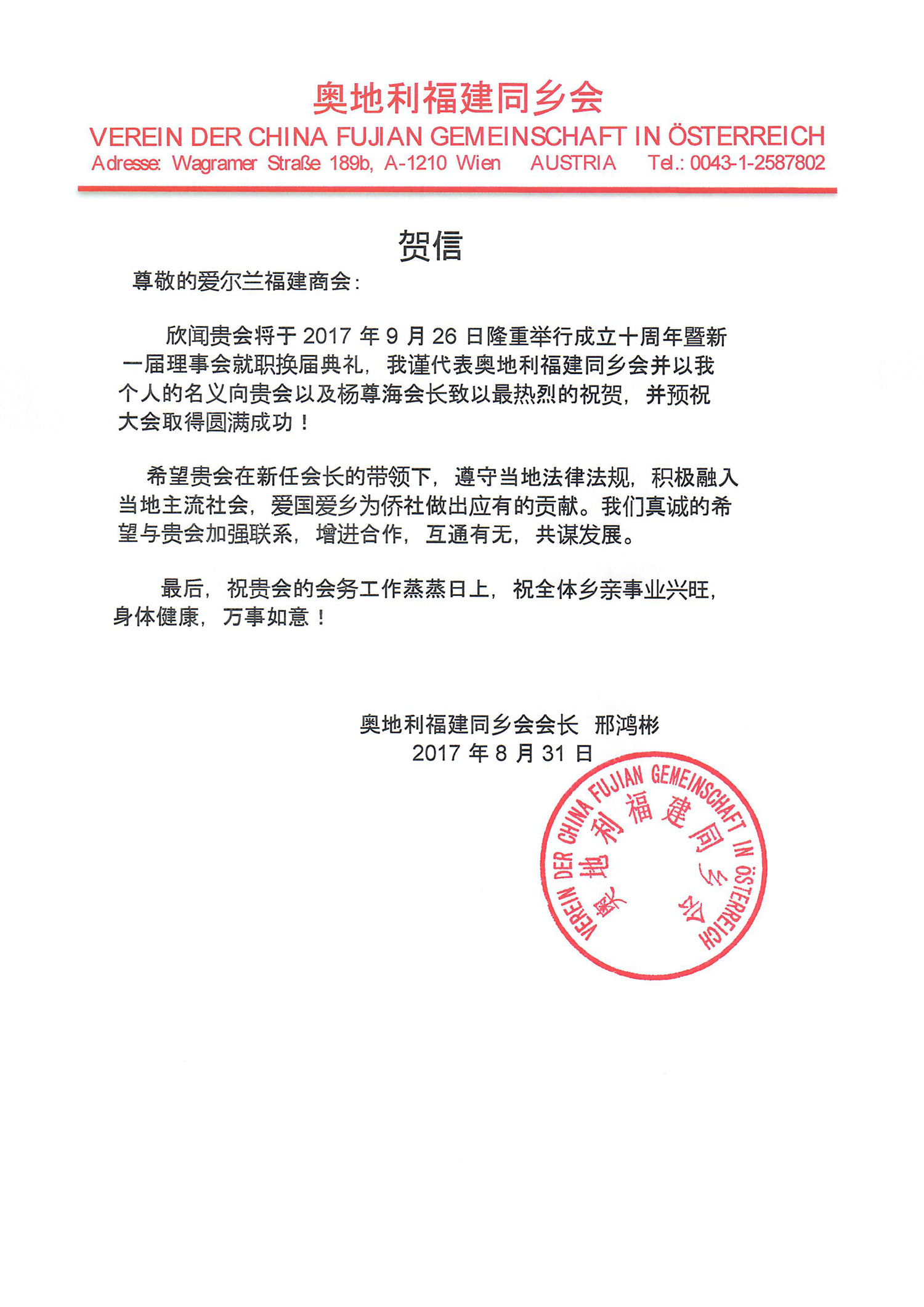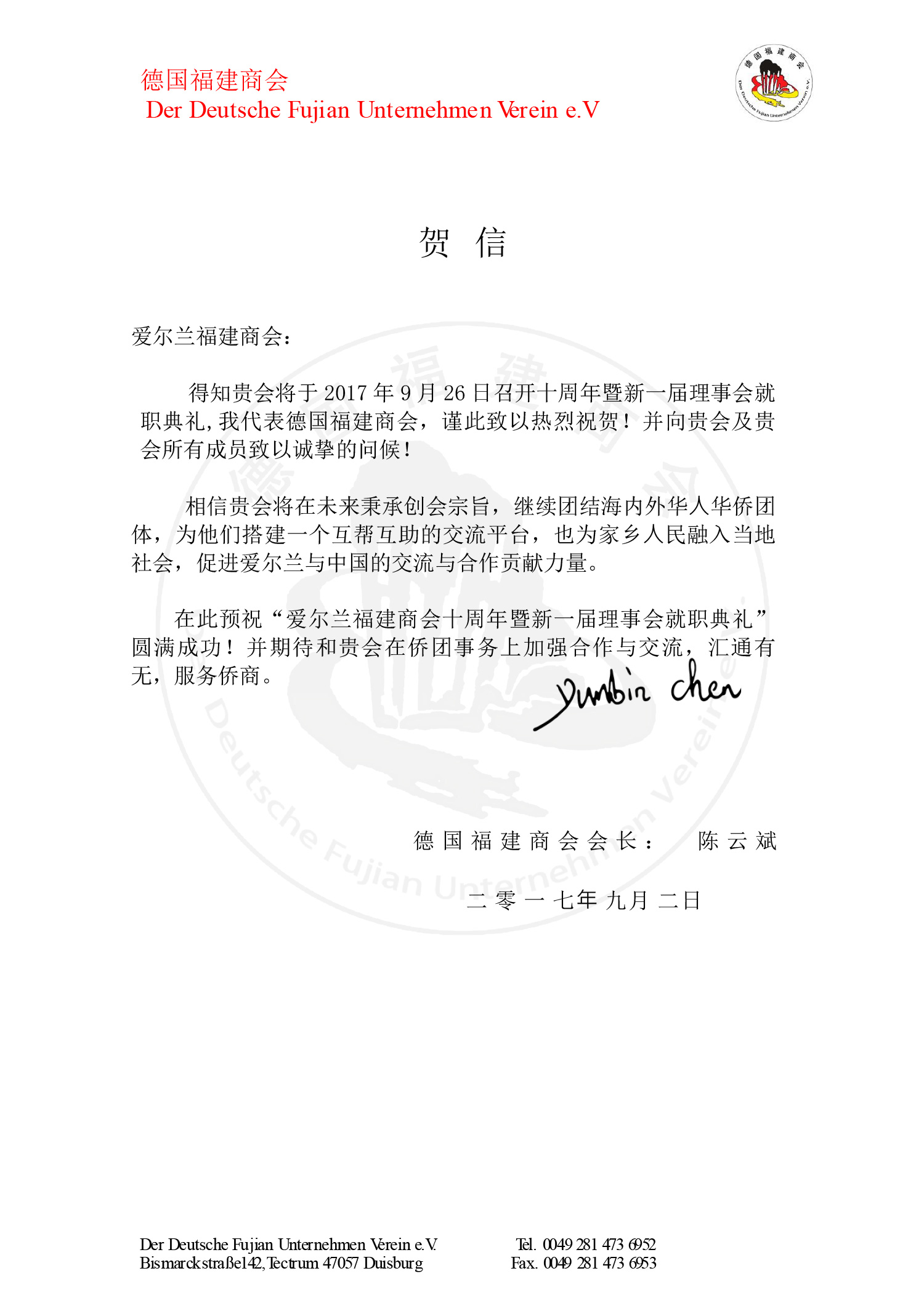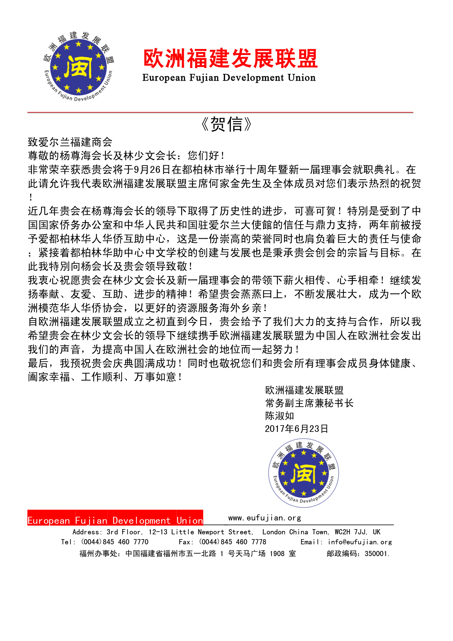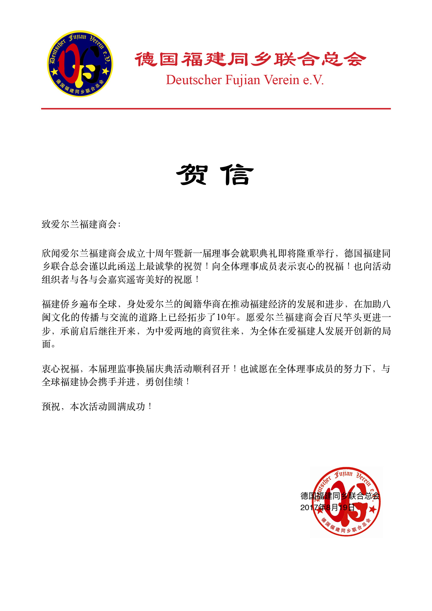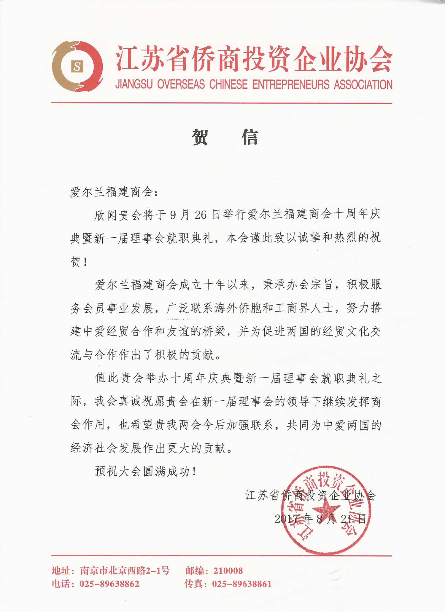 十周年贺信