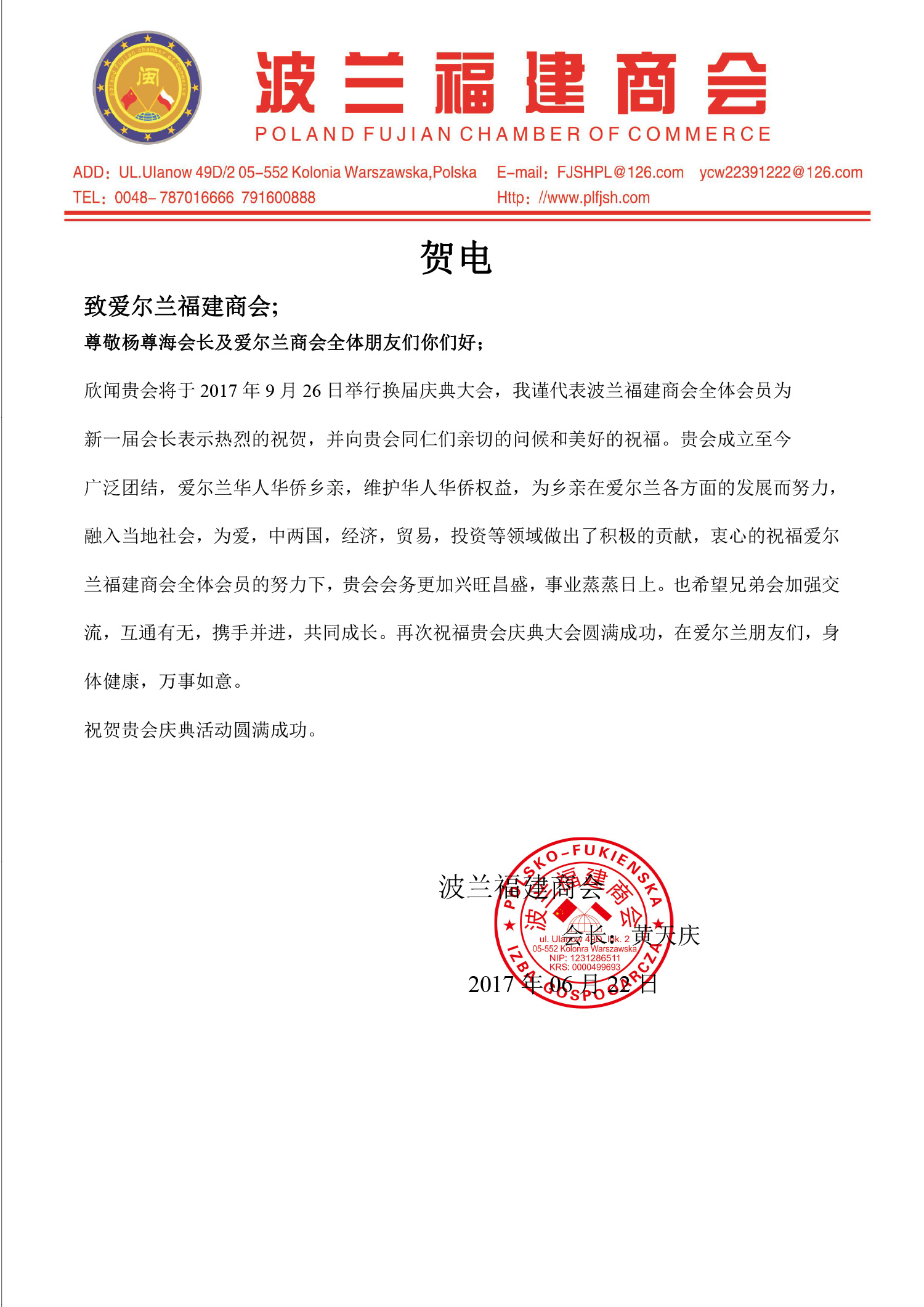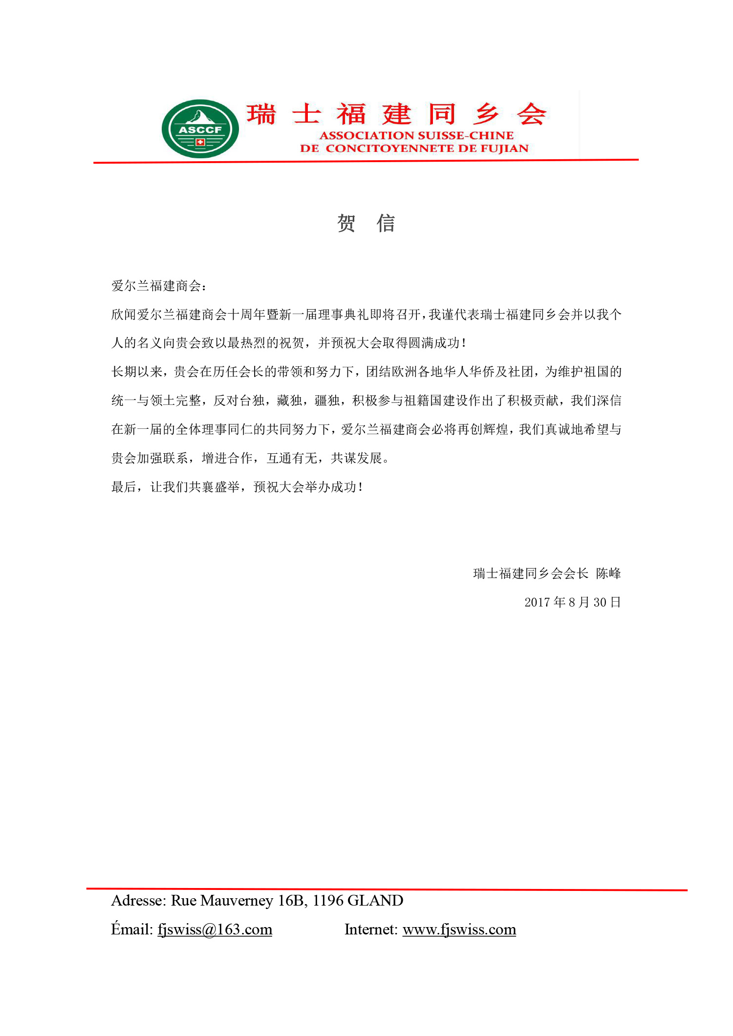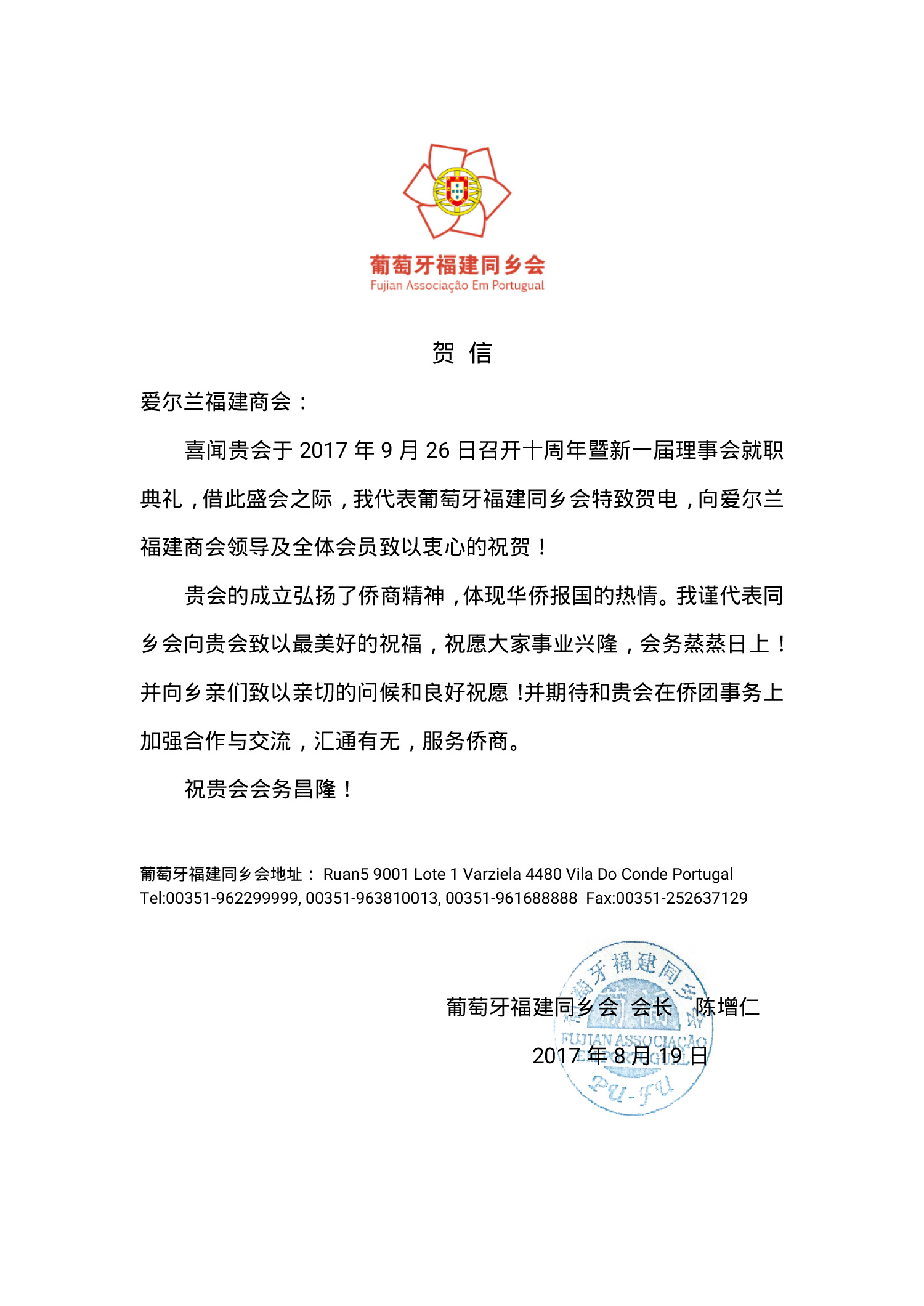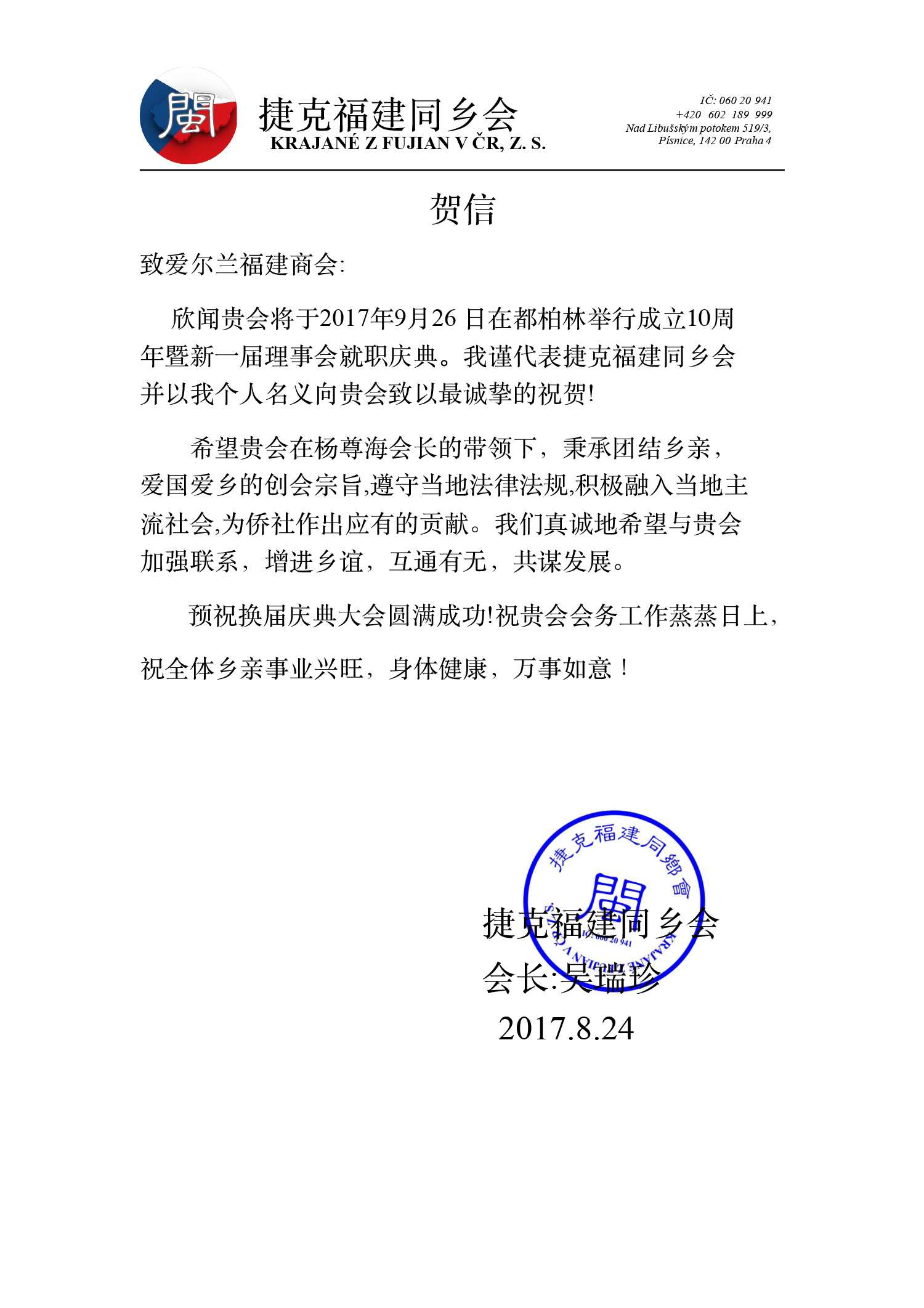 十周年贺信
