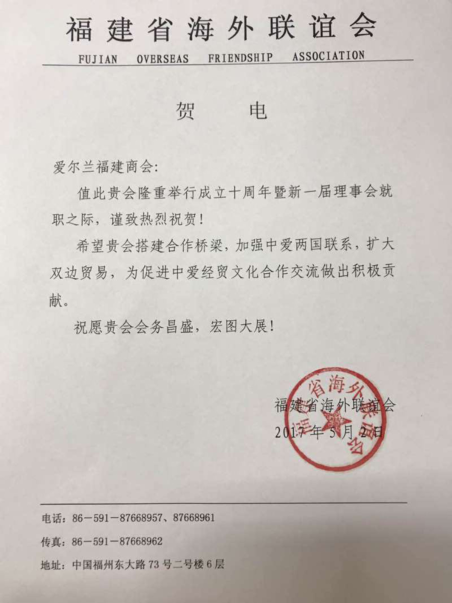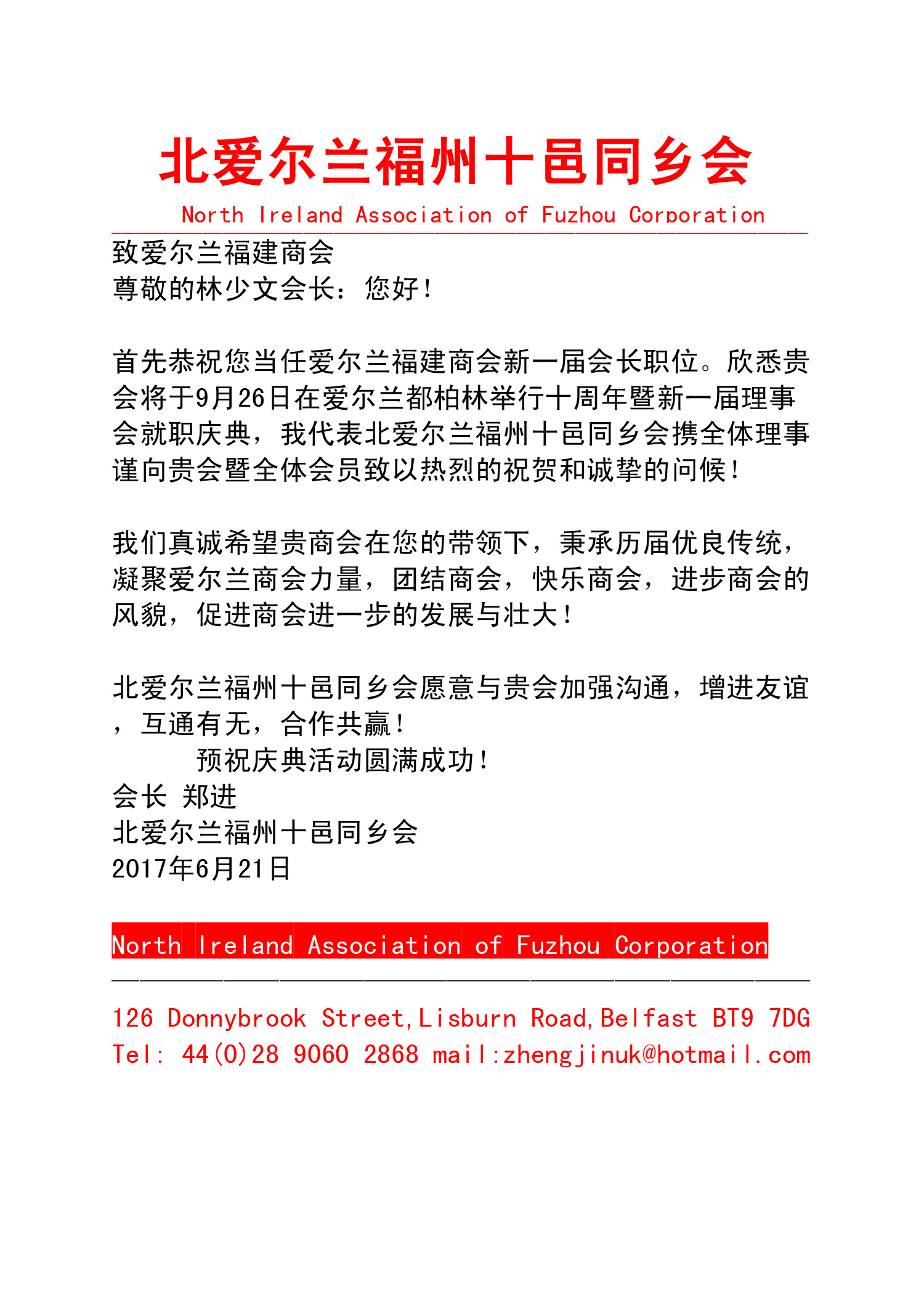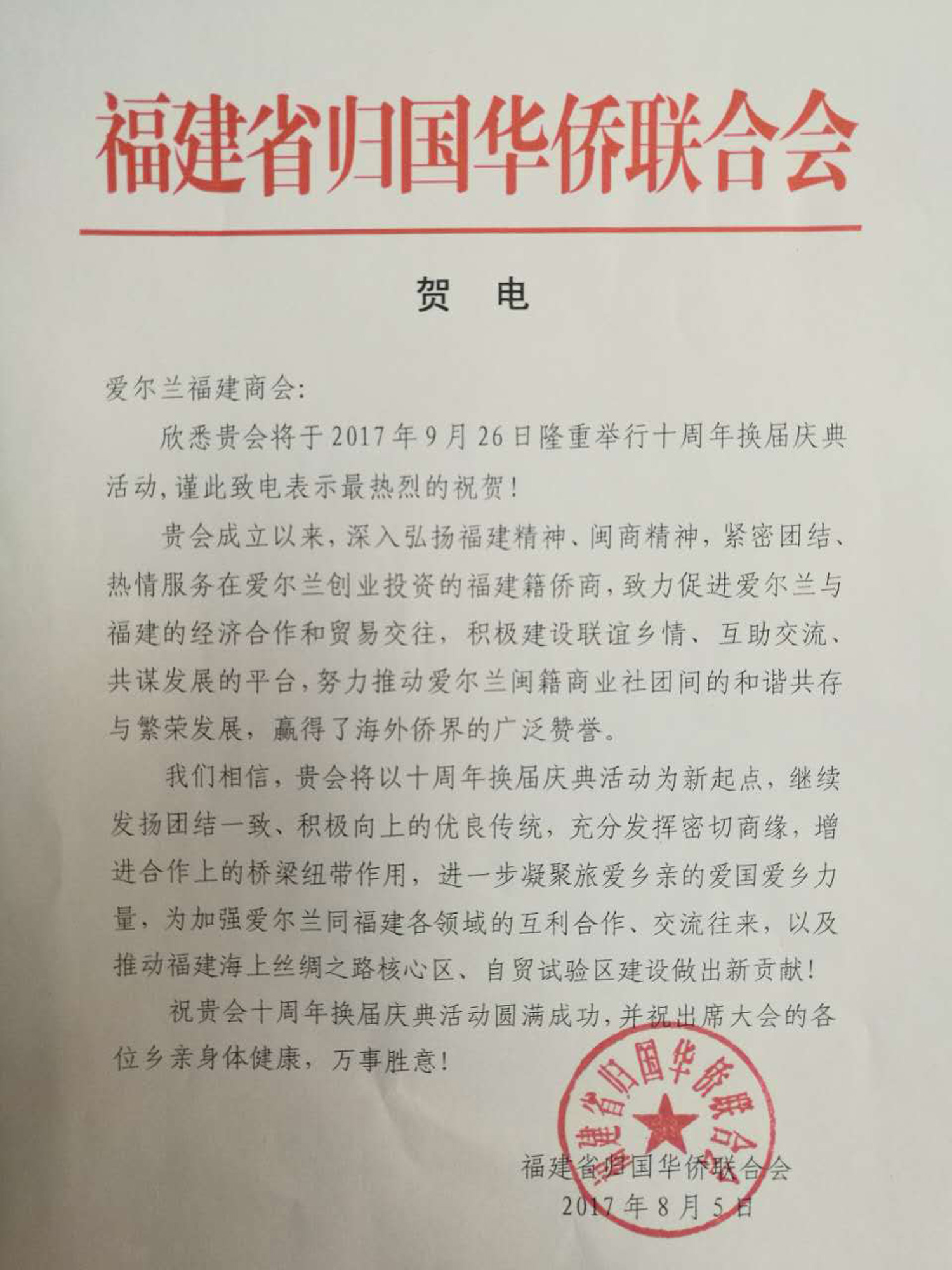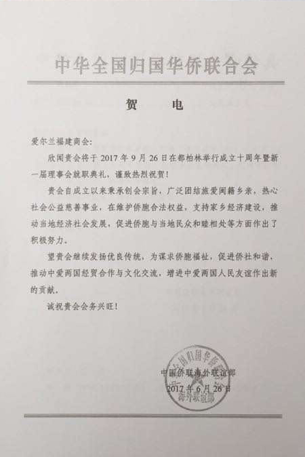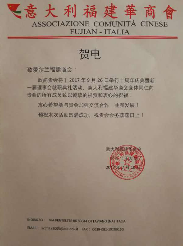 🎉 庆祝爱尔兰福建总商会成立10周年 🎉