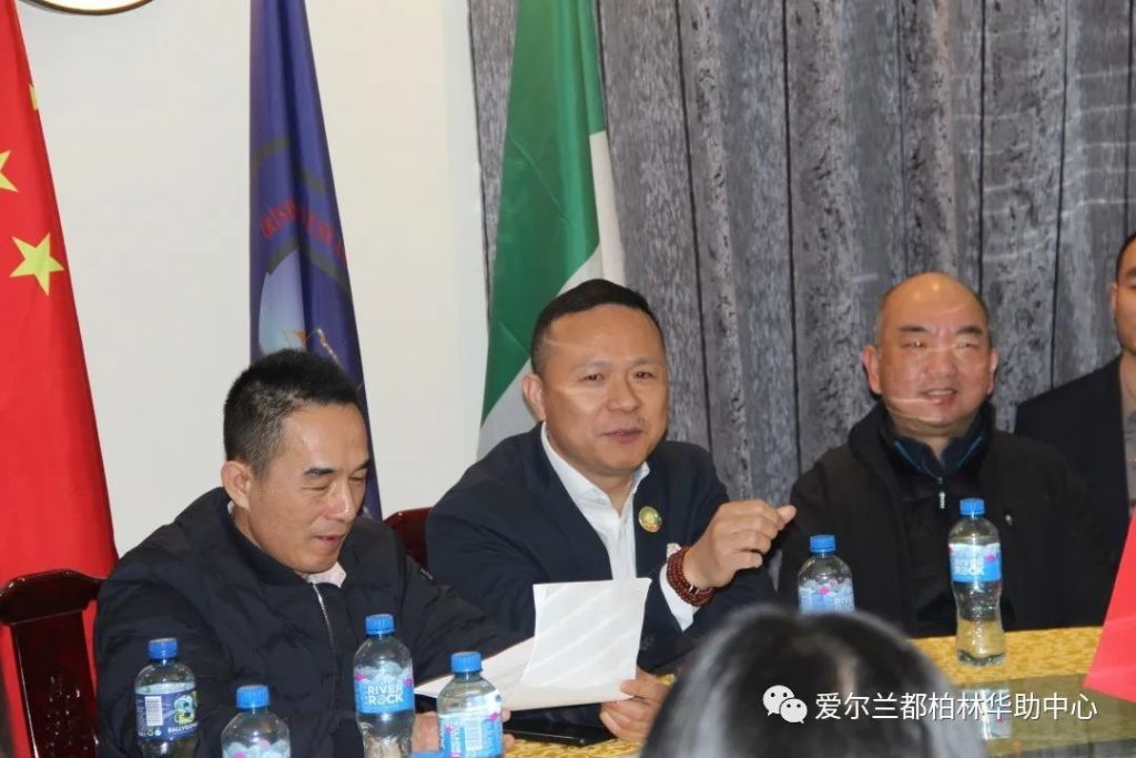 首先,福建总商会会长、都柏林华助中心主任陈华德介绍了总商会的背景、功能作用,描绘了总商会近期和远景规划和目标,分析了总商会面临的机遇和挑战,介绍了总商会组织架构,并对会员提出了团结、共享、律己、和谐侨团等要求,鼓励会员建真言,献良策,鼓干劲。
