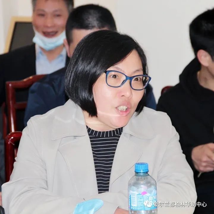 华助中文学校校长苏培新介绍了该校的发展状况以及改革方向;都柏林华助中心行政秘书长张艳介绍了中心的职能作用以及工作心得体会。