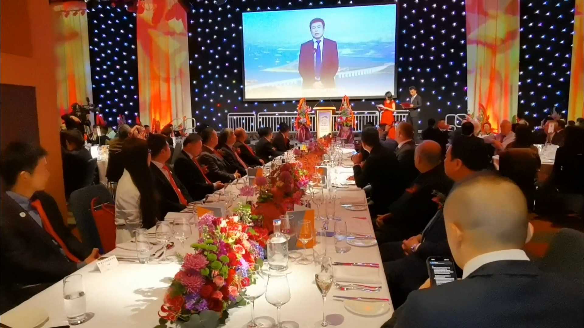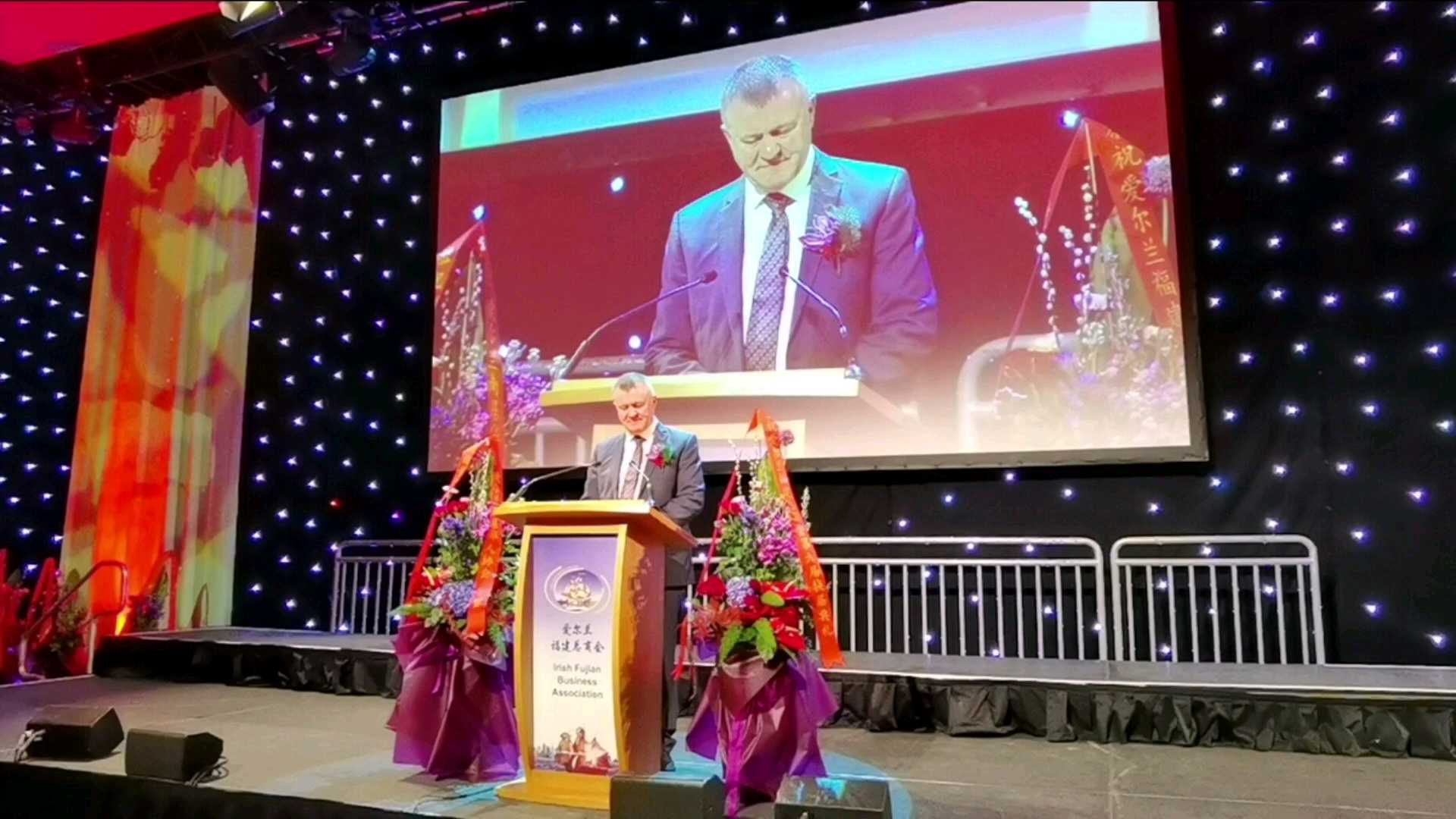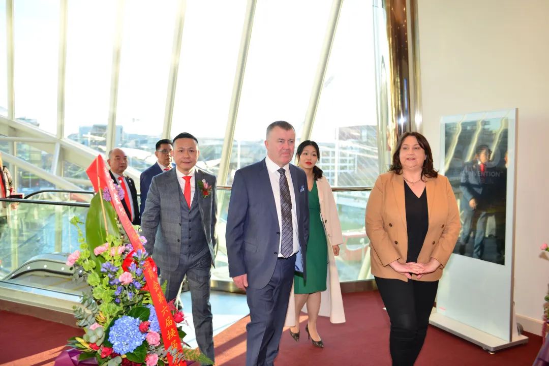 中国驻爱尔兰大使何向东,爱尔兰国务部长Rabbitte, 爱尔兰前能源部长Sean Power, 爱尔兰投资发展局中国区总监张哲伟,欧洲福建发展联盟主席何家金先生,欧洲福建侨团联合总会创会主席翁武平先生,欧洲各国华人社团,爱尔兰当地华人社团、侨领、企业家一共近400人应邀出席。