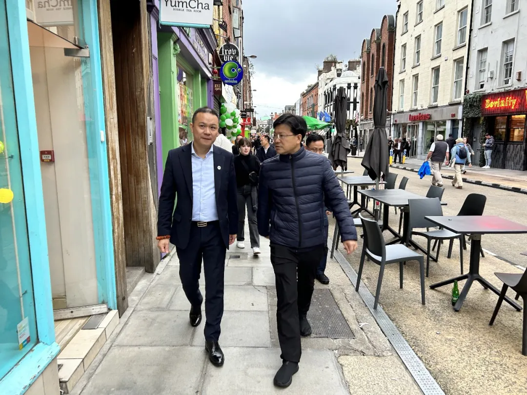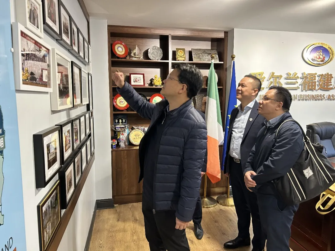 随后,商会荣誉会长杨尊海先生在商会办公室向陈书记详细介绍了爱尔兰福建总商会的发展历程和成就。陈华德会长也亲自陪同书记参观了爱尔兰的华人商业重要街区,并合影留念。